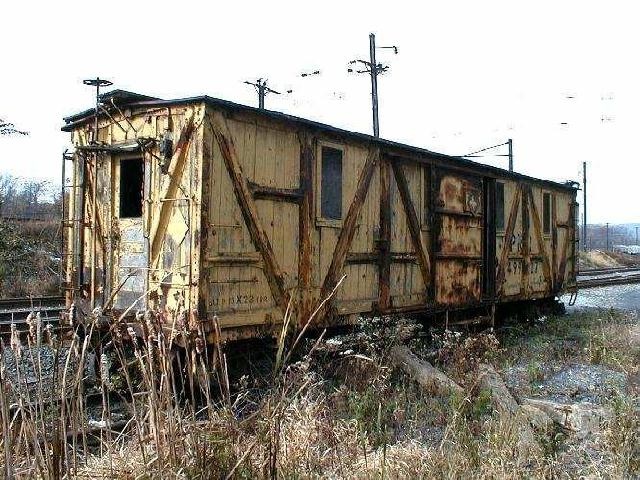 Comment: PRR 499327. A MOW X23 boxcar shot in Enola Yard, November 2004. Photo by Steve Agostini