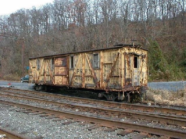 Comment: PRR 499327. A MOW X23 boxcar shot in Enola Yard, November 2004. Photo by Steve Agostini