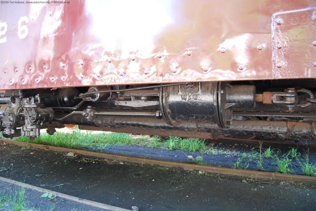 Camera: NIKON CORPORATION NIKON D40X Exposure: 1/30 sec. Aperture: f/3.5 Focal length: 18 mm ISO: 360 Flash: No Date taken: Jun 20, 2009 at 5:03:56 PM Comment: Underbody detail shot of the brake cylinder on PRR baggage car, class B60b, #9026 at the Indiana Transportation Museum in Noblesville. Photo by Ted Andrews. User comment: