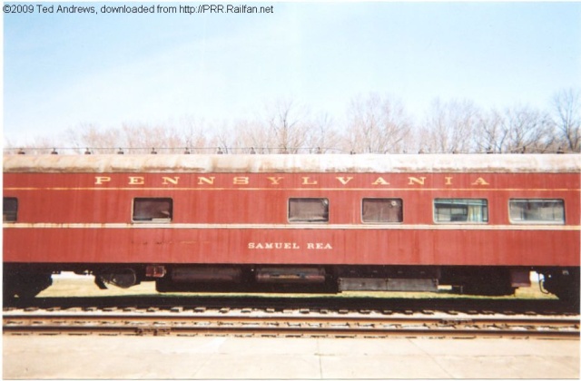 Comment: Side view of Samuel Rea, a Pennsylvania Railroad observation car, class POS 211. Photographed by Ted Andrews in March 2006 at the Indiana Railway Museum in French Lick, Indiana.