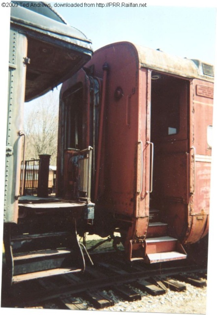 Comment: Vestibule end of Samuel Rea, a Pennsylvania Railroad observation car, class POS 211. Photographed by Ted Andrews in March 2006 at the Indiana Railway Museum in French Lick, Indiana.