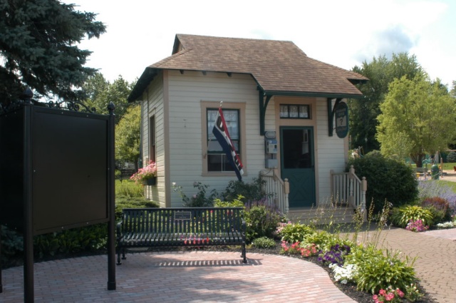 | Comment: | Front of the PRR's former Sodus Point Yard Master's Office. It is currently being used as a visitors information center in Sodus Point, NY. It was originally located in the Zurich yards on the Sodus Bay branch (Stanley to Sodus Point) of the Elmira Division. The Pennsy Moved it to Sodus Point to serve the coal trestle there. It was moved to two different locations at Sodus Point before operations ended there. In 1994, it was given to the Sodus Point tourist office. Photo by Dan Stirpe. |