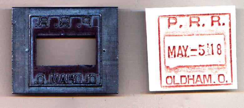PRR: Oldham, Ohio fits Hills model AD ticket dater Collection of: Edward R. Long Photo/scan by: Edward R. Long - looking to buy dater dies and railroad wax sealers! View large image (1275x568 - 268 K)