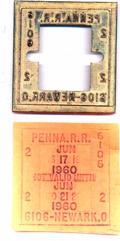 Penna. RR: Newark, OH. Agent #2 fits Hills model AD ticket dater Collection of: Edward R. Long Photo/scan by: Edward R. Long - looking to buy dater dies and railroad wax sealers!